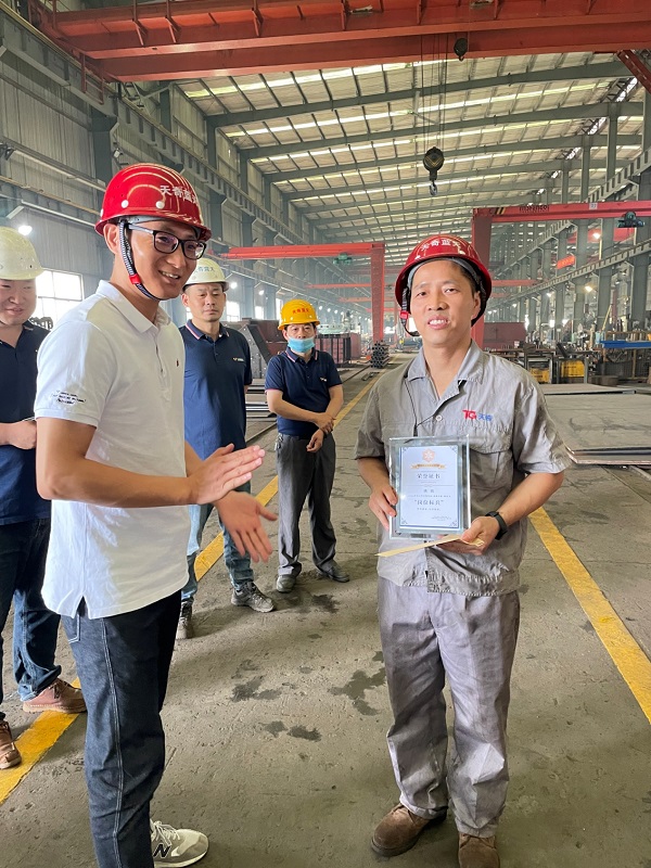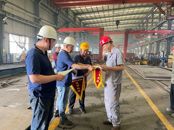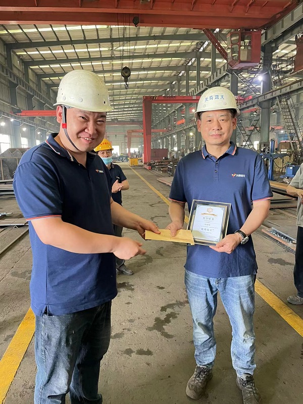 6月2日上午11時(shí),天奇藍(lán)天公司在生產(chǎn)現(xiàn)場(chǎng)召開(kāi)了一場(chǎng)表彰大會(huì)。 首先,由公司總經(jīng)理助理施樂(lè)勤對(duì)五月份在“先進(jìn)班組”考核中優(yōu)勝的“下料車間曹軍班組”和“裝配朱長(zhǎng)生班組”授予了先進(jìn)班組流動(dòng)紅旗和獎(jiǎng)金,并對(duì)2021年受股份公司表彰的“優(yōu)秀員工”阮德明、朱風(fēng)巧及“崗位標(biāo)兵”谷昆明、姚鎮(zhèn)四名同志頒發(fā)榮譽(yù)證書(shū)和獎(jiǎng)金。 企業(yè)穩(wěn)健發(fā)展離不開(kāi)全體員工的辛勤付出,希望受表彰的優(yōu)秀員工,戒驕戒躁,發(fā)揮模范作用,在今后的工作中再接再厲、全力以赴、爭(zhēng)創(chuàng)佳績(jī)。愿和諧、互勉、共同進(jìn)步的氣氛長(zhǎng)存;讓企業(yè)文化扎根在每一位員工的心中。
